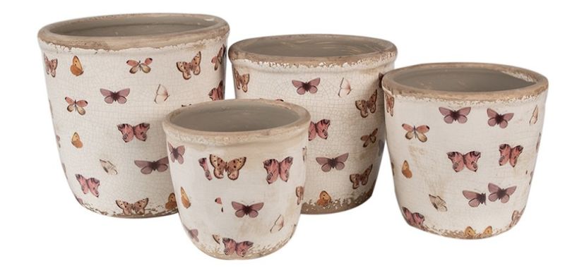 Keramická série Butterfly Paradise od Clayre & Eef vnese do interiéru lehkost a romantiku jarní zahrady. Na krémovém podkladu tančí drobní motýli v růžových a meruňkových tónech, kteří působí jemně a radostně. V kolekci najdete květináče, džbánky, dekorativní koule i srdce, takže snadno sladíte parapet, stůl i venkovní posezení. Keramika se hodí pro bylinky, pokojové rostliny i čerstvé květy a krásně doplní venkovský, shabby chic i boho styl. Butterfly Paradise je ideální volbou, pokud chcete domovu dodat něžný, hravý akcent a připomenout si kouzlo léta po celý rok.