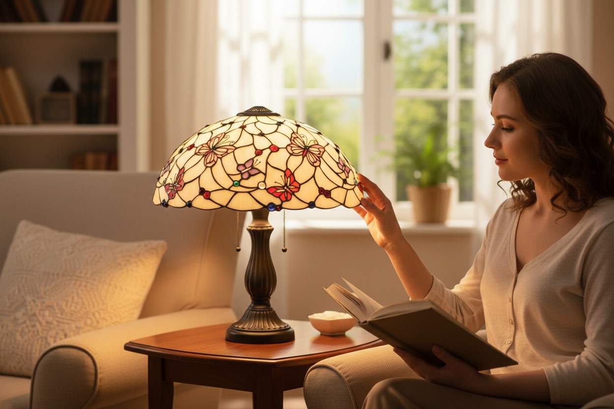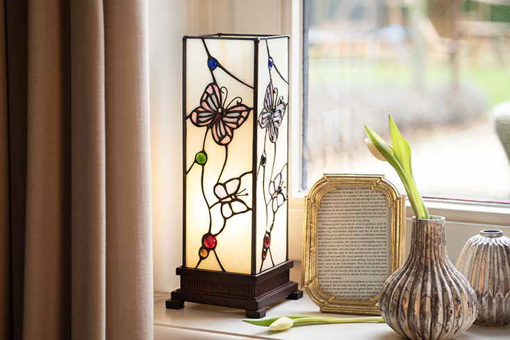 Tiffany lampy z kolekce Butterfly Paradise okouzlí milovníky jemných detailů i přírodních motivů. Vitrážová stínidla zdobí pestrý rej motýlů, který přináší do interiéru klid, harmonii a pocit nadčasového kouzla. Precizní zpracování a bohaté barevné přechody z nich dělají malé umělecké dílo, které vynikne v klasickém i moderním prostředí. Butterfly Paradise je poctou věčné kráse přírody a skvělou volbou všude tam, kde chcete vytvořit elegantní, útulnou a inspirativní atmosféru – ať už v obývacím pokoji, ložnici nebo čtecím koutku.