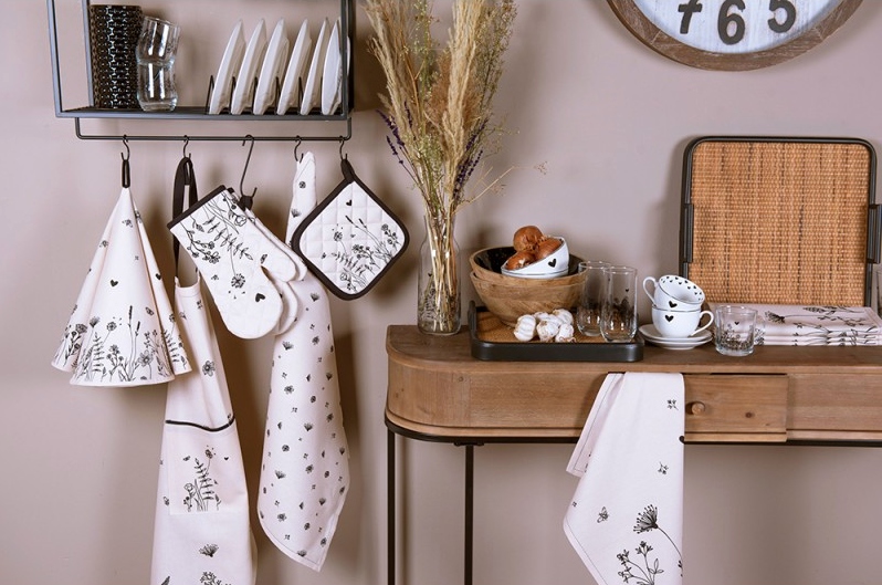 Textilní série Flora and Fauna se skvěle hodí do každého moderního interiéru, kde chcete podtrhnout přírodní atmosféru. Jemné květiny a drobné včelky působí svěže, hravě a přitom nadčasově. Kuchyňské utěrky, zástěry, chňapky a rukavice zajistí pohodlí při vaření, ubrusy, běhouny, prostírání, ubrousky a textilní košíky na pečivo zase vytvoří krásně prostřený stůl. V kombinaci s ladícím nádobím se Flora and Fauna stává „must-have“ kolekcí pro všechny, kdo milují přírodu a společné chvíle u stolu.