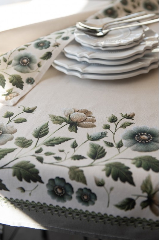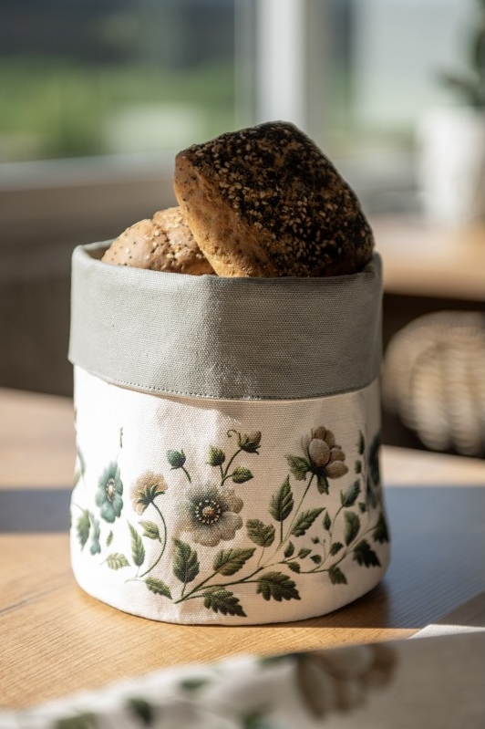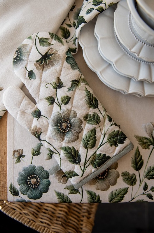 Textilní série Gently Blooming přinese do kuchyně jemnou eleganci v přírodních tónech. Teplý béžový podklad zdobí květy v měkkých zelených odstínech, které vypadají, jako by byly ručně vyšívané. Působí klidně, sofistikovaně a snadno se kombinuje s bílým i barevným nádobím. Ubrusy, běhouny, prostírání, textilní košíky na pečivo, zástěra, utěrky, chňapky i podložky pod hrnce vytvoří sladěný celek pro každodenní stolování i sváteční příležitosti.