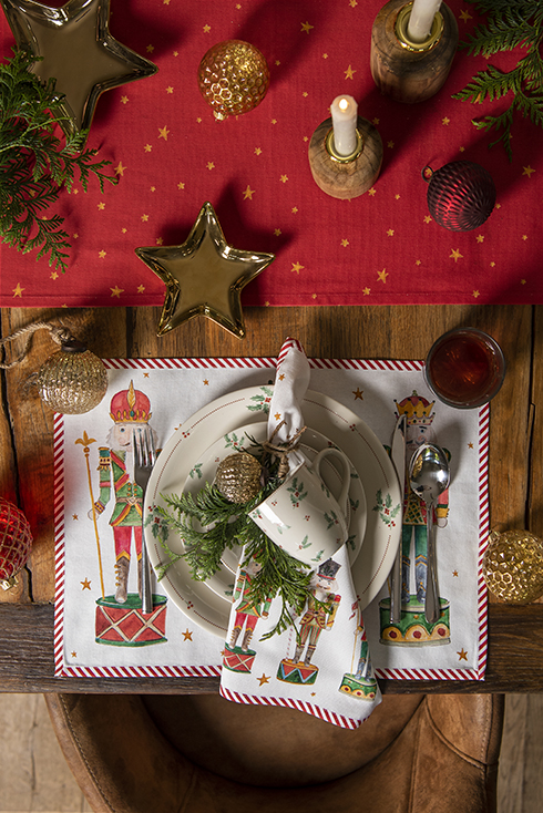 Textilní série Happy Little Christmas zaručí, že budou letošní Vánoce opravdu útulné a plné lásky. V hlavní roli stojí klasické postavičky louskáčků, které doplňují výrazné červené detaily – ideální pro všechny, kdo milují tradiční sváteční styl. Běhouny, prostírání, ubrusy a textilní ubrousky vytvoří během chvilky slavnostní tabuli. Dokonalý dojem podtrhne ladící nádobí, které se bude krásně vyjímat na stole i ve vitríně.