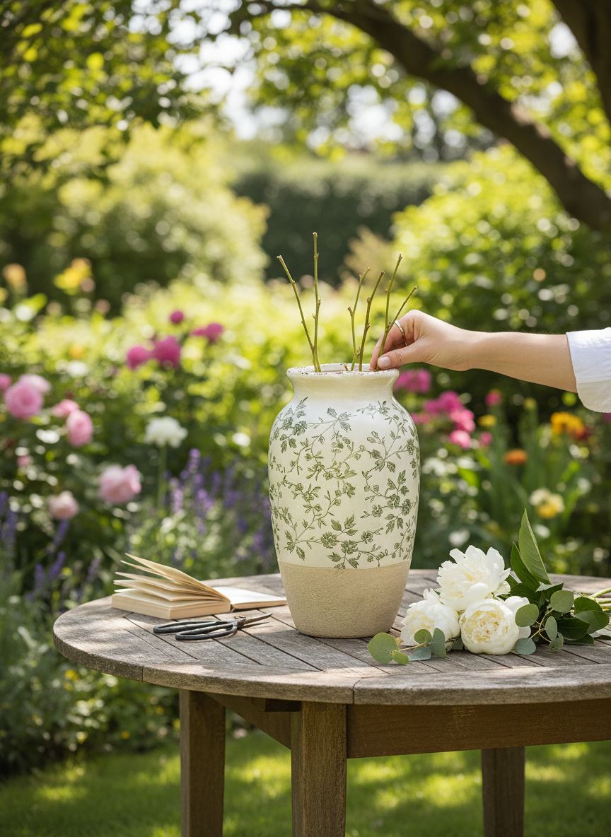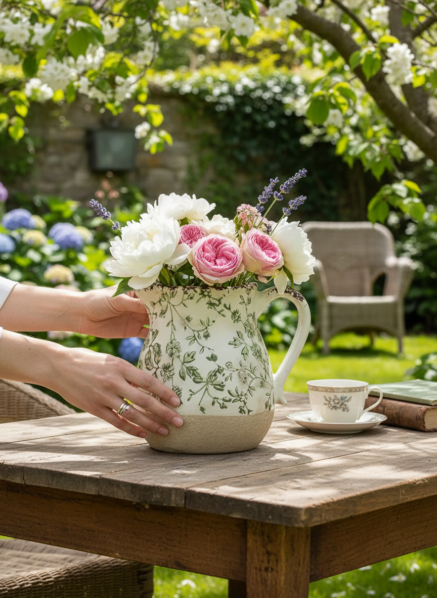 Keramická série Leaves of Grace zaujme jemným přírodním stylem: krémová glazura s decentním zeleným botanickým motivem působí lehce vintage, zatímco spodní část v pískovo-kamenném tónu dodává každému kusu útulný, „ručně“ laděný charakter; vázy i džbánky krásně vyniknou samostatně na polici či komodě a skvěle se hodí pro větvičky, luční květy i sušené traviny, které jejich klidnou eleganci ještě podtrhnou.