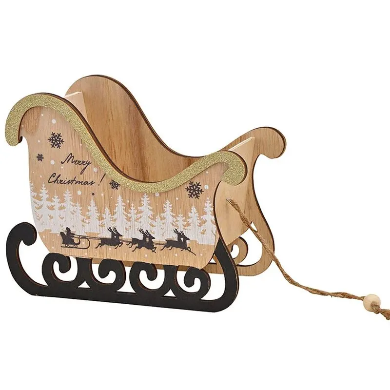 Tyto krásné dřevěné sáňky by rozhodně ve vánočním dekorování neměly chybět. Svými rozměry jsou vhodné k výzdobě stolu, jako ozdoba na skříňce, krbové římse nebo parapetu v obývacím pokoji, jídelně nebo kuchyni.