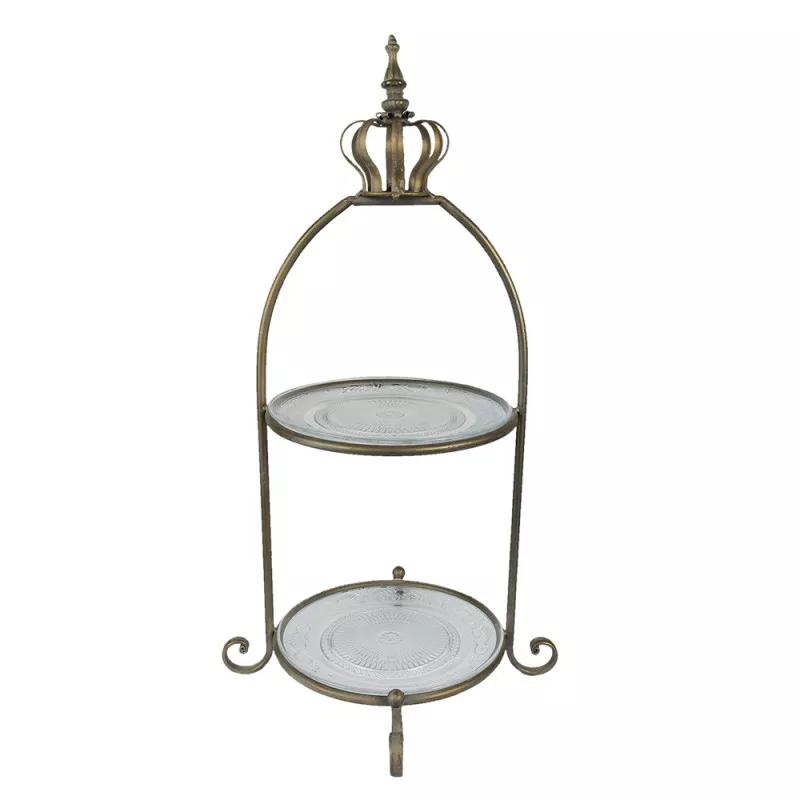 Dvoupatrový kovový etažér se skleněnými talíři Clayre & Eef 5Y0748GO