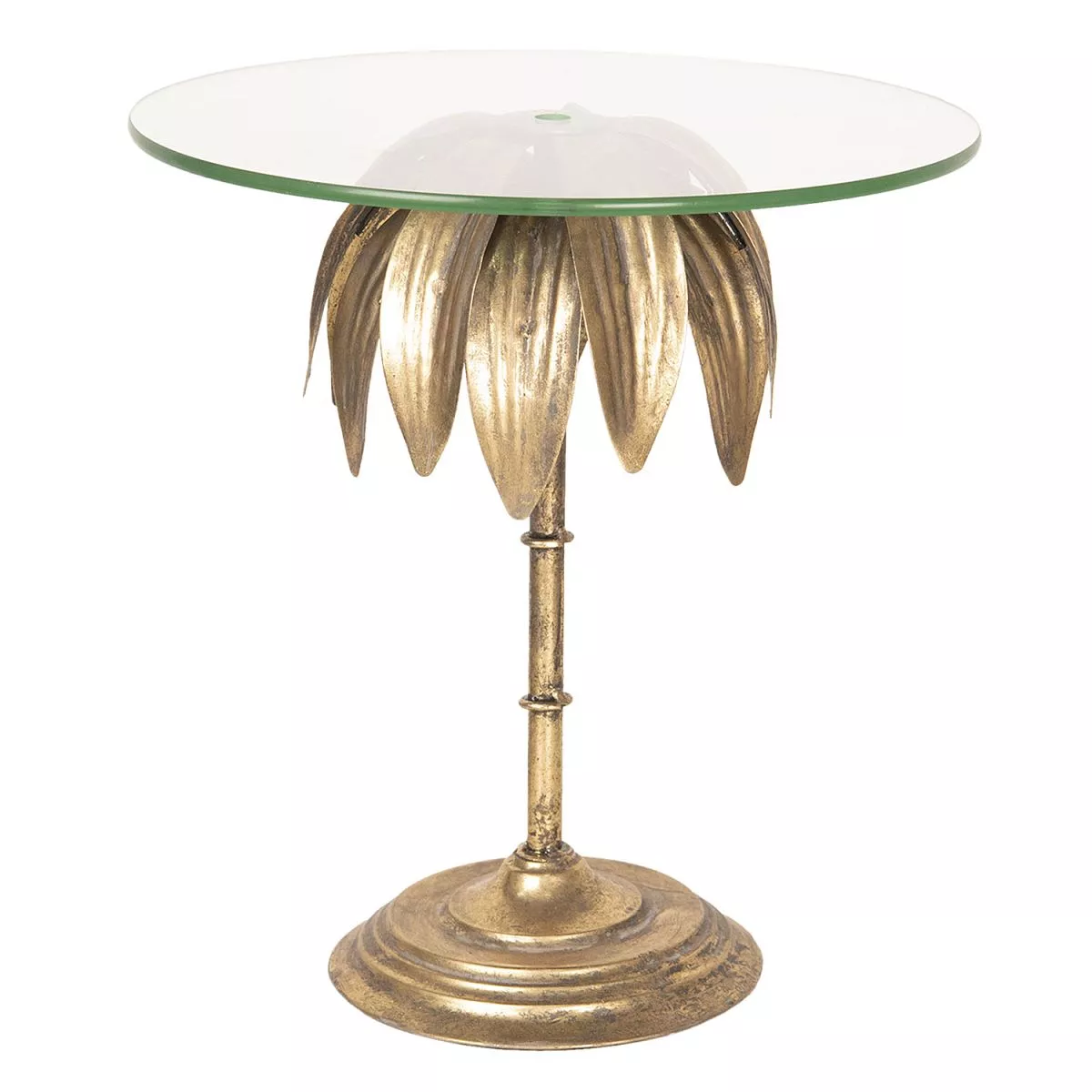 Krásný kovový stojan na dort se skleněným talířem a zlatým podstavcem ve tvaru palmy. Skvěle se hodí na servírování dortu, mini sendvičů nebo koláčků. Pěkně na něm vynikne také skupina různě vysokých svíček.