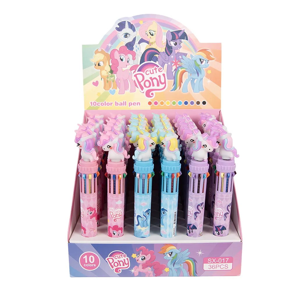 Veselé a praktické kuličkové pero v roztomilém designu koníka, které si děti zamilují na první pohled. Díky 10 různým barvám inkoustu nabízí snadné přepínání barev pouhým stisknutím tlačítka, takže psaní i kreslení bude vždy zábavné a kreativní. Pero je lehké, odolné a dobře padne do dětské ruky. Ovládání je velmi jednoduché – stačí si vybrat barvu a jedním kliknutím začít psát. Ideální do školy, na doma i jako milý drobný dárek. Dopřejte dětem radost z psaní s perem, které promění každodenní úkoly v hravou a barevnou zábavu.