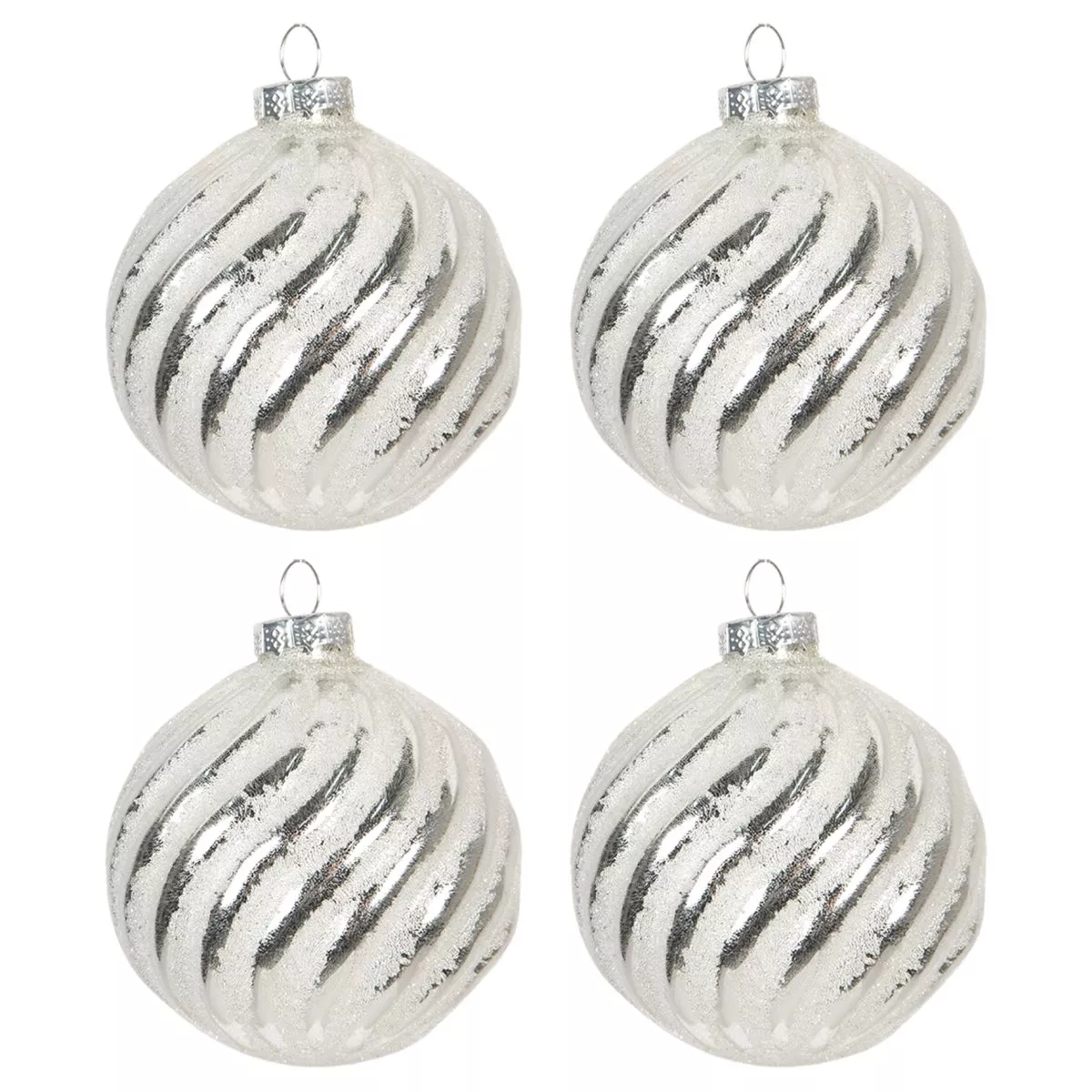 Sada čtyř dekorativních, luxusních skleněných vánočních ozdob v klasickém stylu, ve stříbrné barvě.