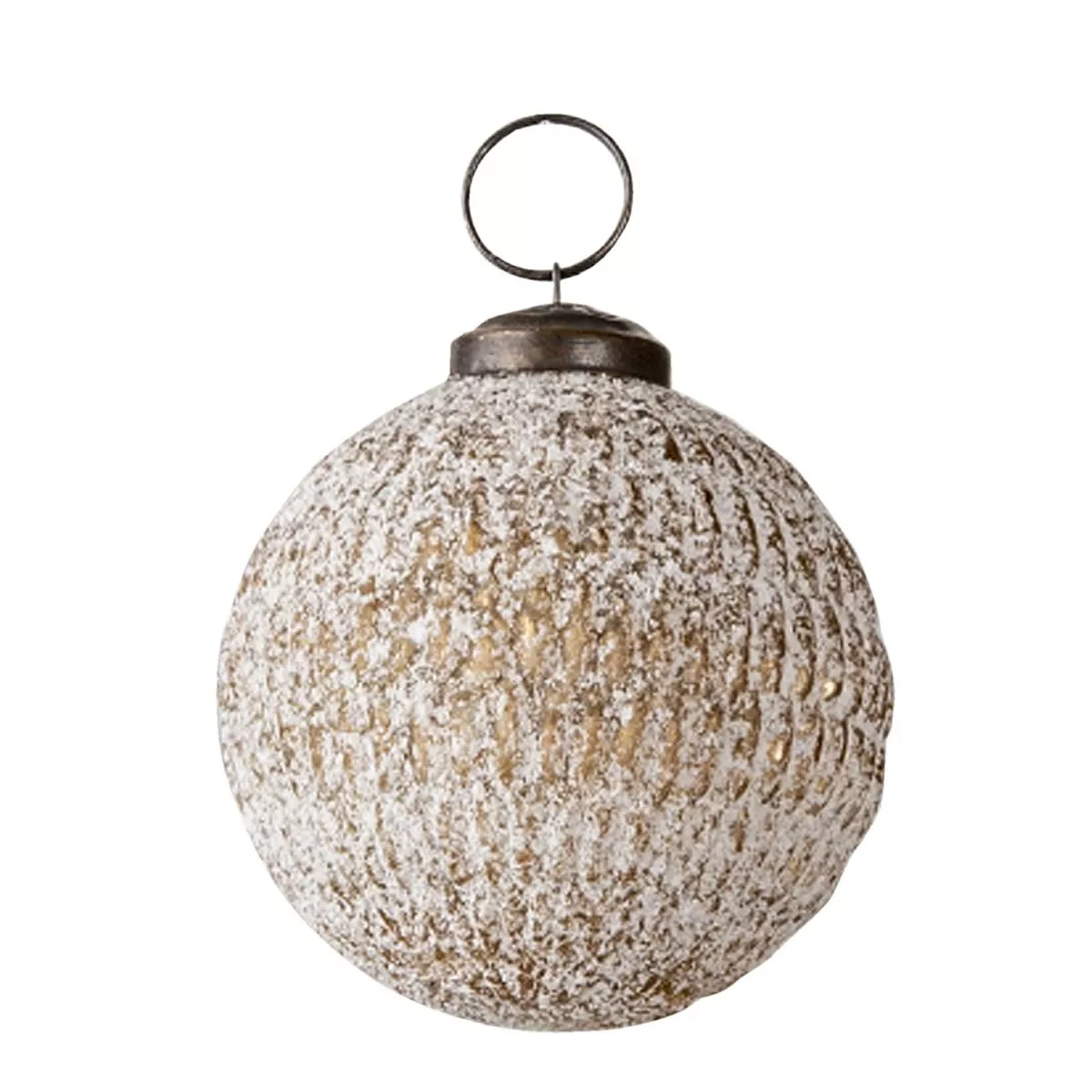 Dekorativní, luxusní skleněná vánoční ozdoba v béžové barvě, v klasickém stylu.