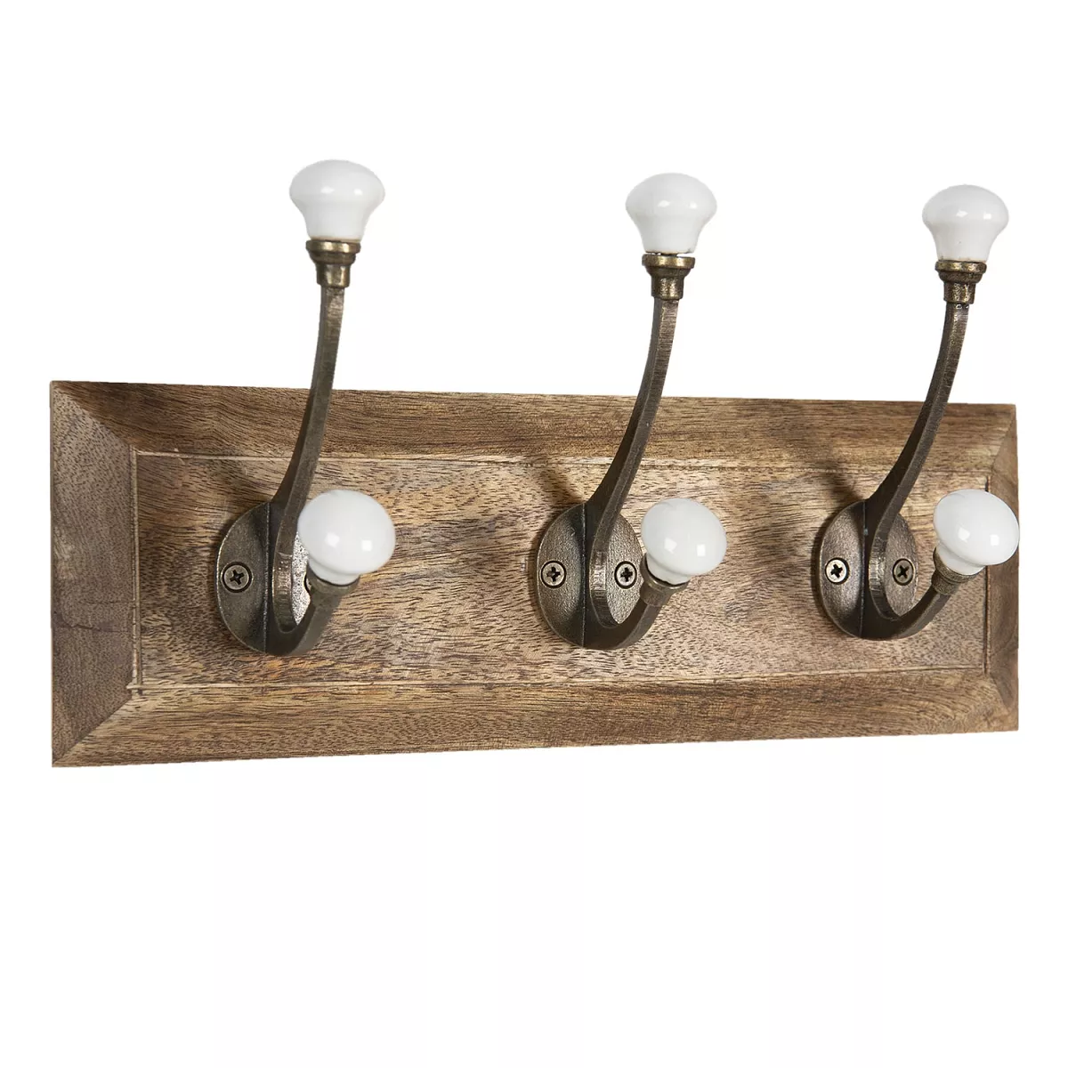 Dekorativní nástěnný věšák se čtyřmi háčky zakončenými krásnými keramickými knoflíky. Doporučujeme pro provensálské, vintage, rustikální a venkovské interiéry.