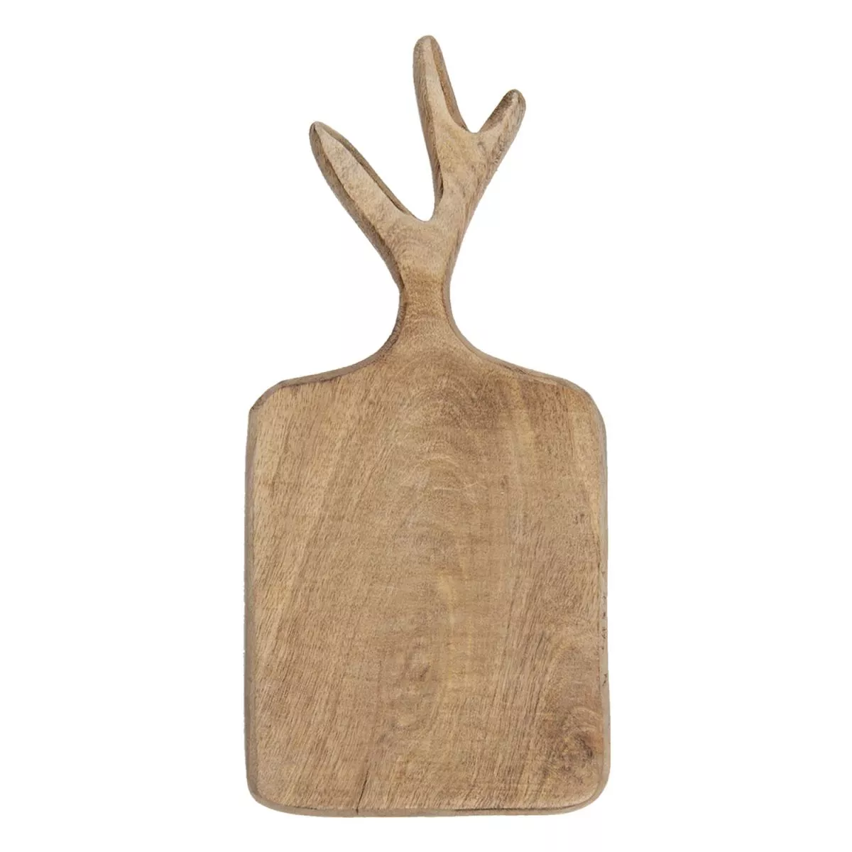 Dekorativní servírovací dřevěné prkénko s rukojetí ve tvaru parohu.