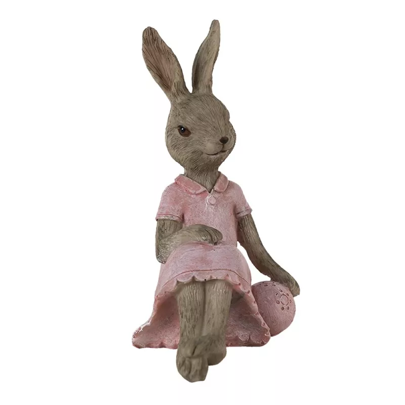 Dekorativní figurka sedící zaječky s vajíčkem Clayre & Eef 6PR3531