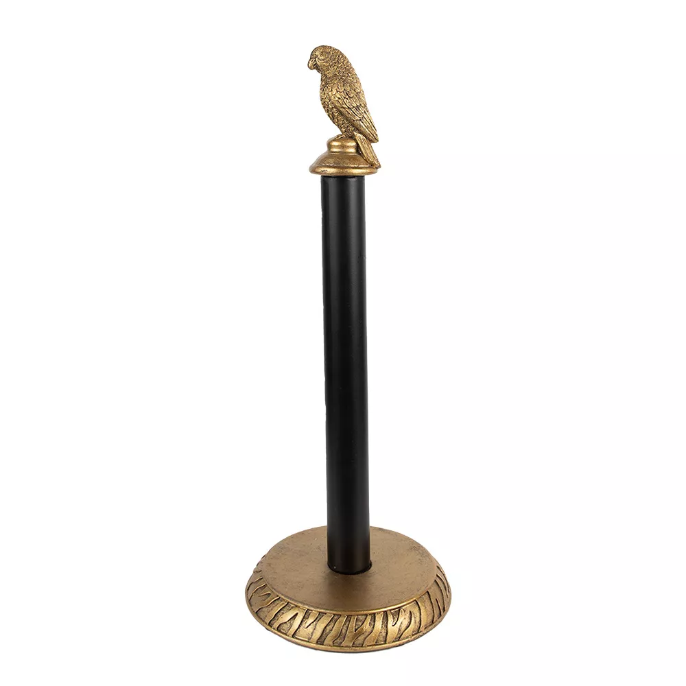 Praktický a elegantní držák na papírové utěrky do kuchyně, ozdobený pozlaceným papouškem.