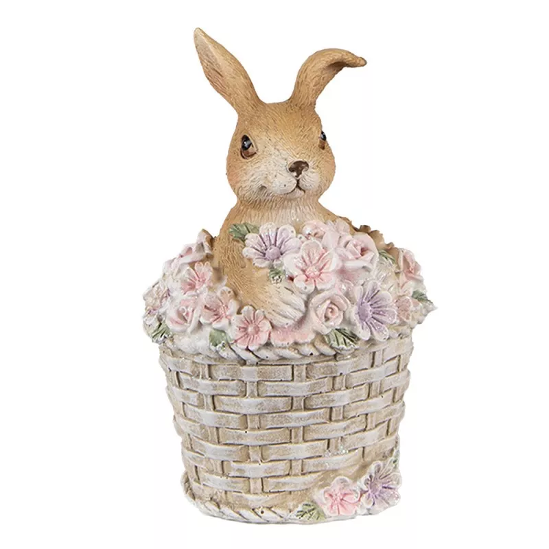 Dekorativní figurka zajíčka v košíku Clayre & Eef 6PR3834