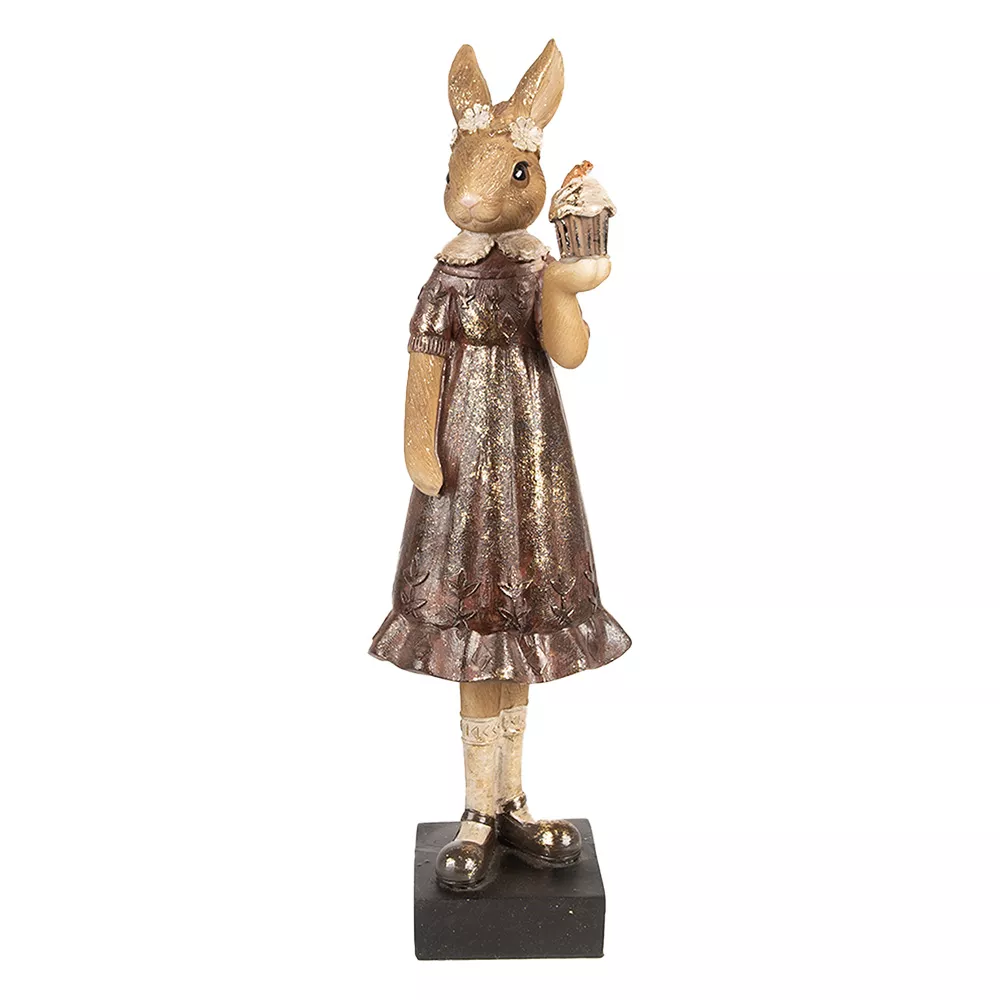 Krásná dekorativní figurka hnědé králičí holky s dortíkem ve venkovském stylu.