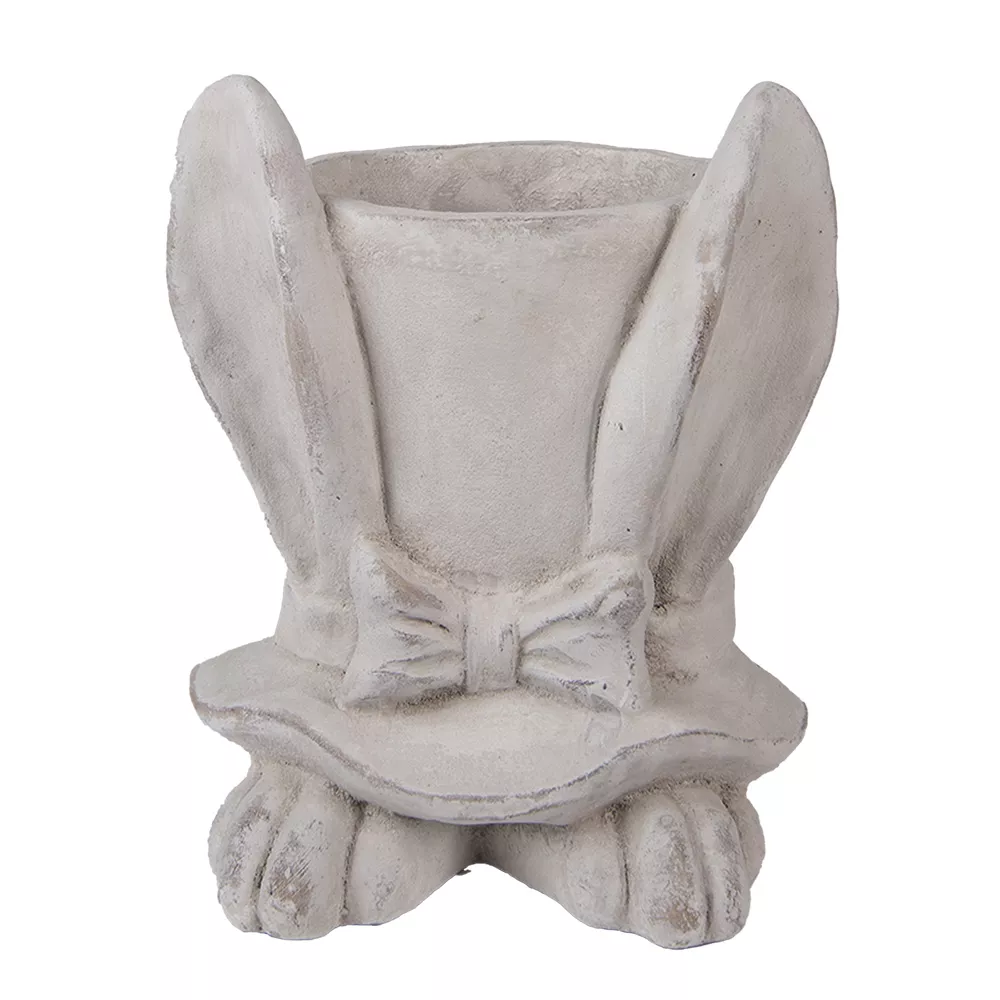 Dekorativní béžový květináč ve tvaru králíka v klobouku přidává jedinečný šarm každému prostoru. Svou elegantní estetikou zaujme nejen jako nádoba pro rostliny, ale i bez rostlin je působivou dekorací.
