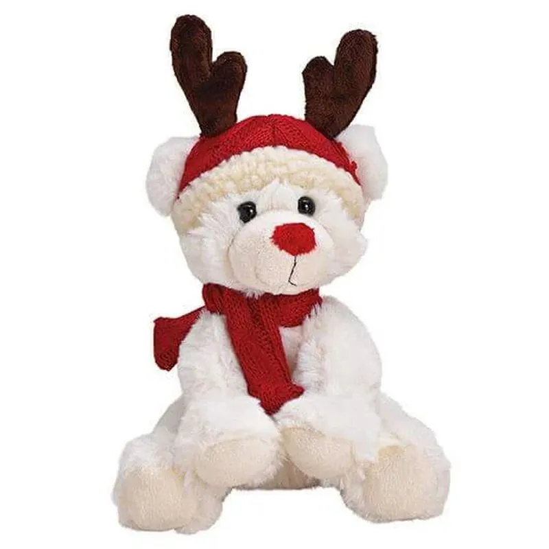 Plyšový sedící medvídek v sobí čepici WHITE Wurm 700370
