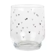 Krásná průhledná sklenice na vodu/nápoj s potiskem srdíček. Tato sklenička je vyrobena z vysoce kvalitního skla, je nejen odolná, ale také vyzařuje sofistikovanost díky svému elegantnímu designu a křišťálově čistému vzhledu. Její hladký okraj zajišťuje pohodlné pití a umožňuje vám vychutnat si každý doušek vašeho oblíbeného osvěžujícího nápoje.