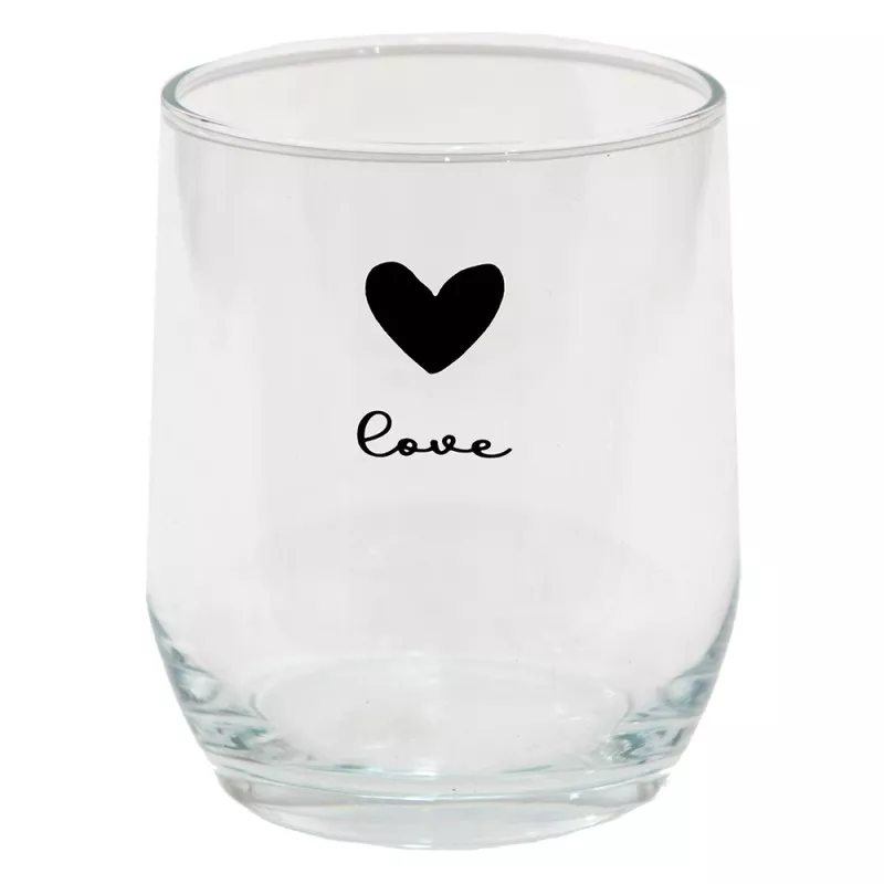 Sklenička na vodu/nápoj s potiskem černého srdce z kolekce LOVE BIRDS. Tato sklenička na vodu, vyrobená z vysoce kvalitního skla, je nejen odolná, ale také vyzařuje sofistikovanost díky svému elegantnímu designu a křišťálově čistému vzhledu. Její hladký okraj zajišťuje pohodlné pití a umožňuje vám vychutnat si každý doušek vašeho oblíbeného osvěžujícího nápoje.