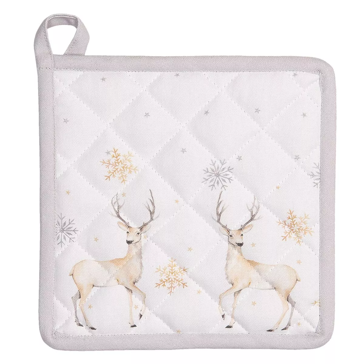 Bavlněná podložka nebo chňapka z textilní kolekce PASTEL CHRISTMAS. Krásná textilní řada, která je díky svým nádherným vzorům nepostradatelnou součástí vánoční výbavy. Díky barevné paletě v pastelových odstínech lze tuto sérii jemně a krásně kombinovat s mnoha druhy nádobí.
