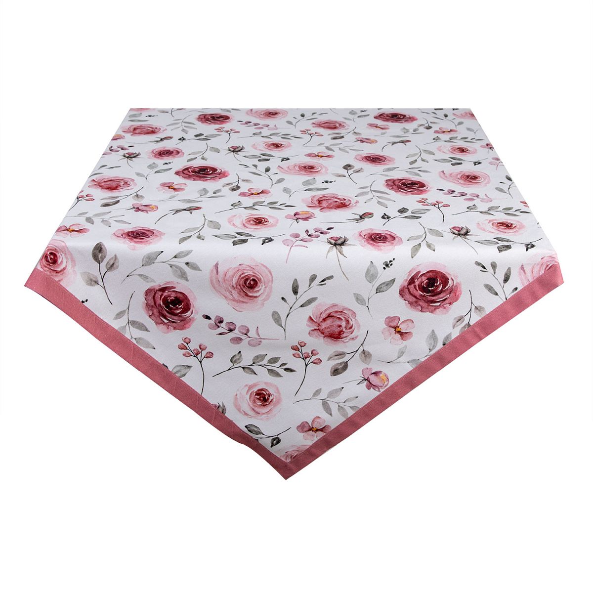 Krásný bavlněný bílý ubrus z textilní kolekce RUSTIC ROSE. Série s růžemi ve starorůžové barvě na bílém pozadí má rustikální charakter a dodává kuchyňskému stolu svěží barevnost.