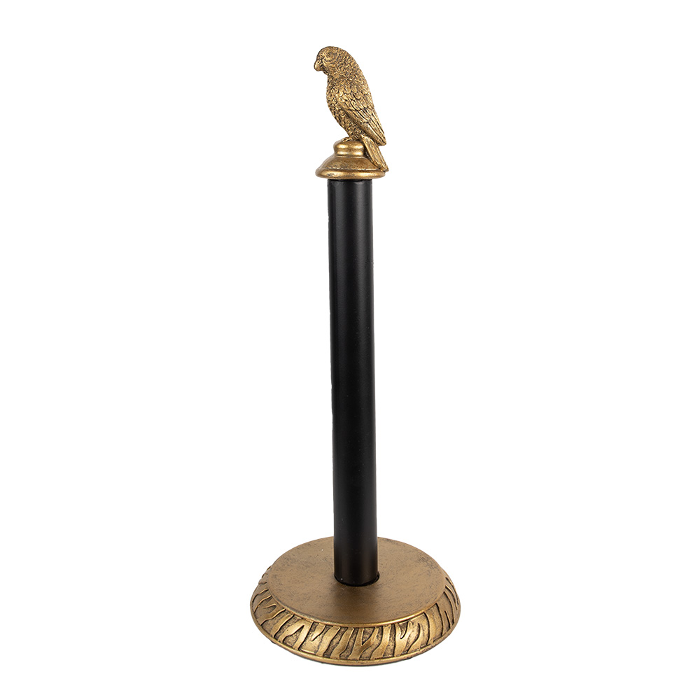 Praktický a elegantní držák na papírové utěrky do kuchyně, ozdobený pozlaceným papouškem.