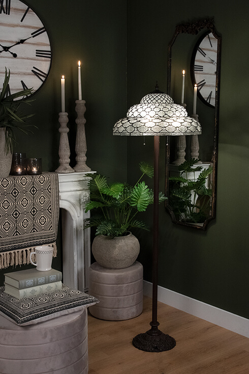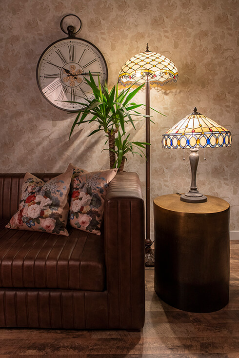 Tiffany stojací a sloupové lampy Clayre & Eef – elegance ve velkém