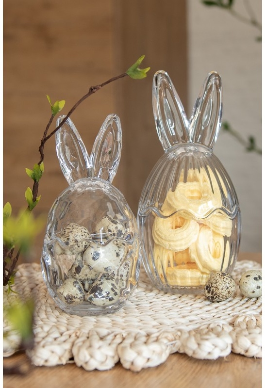 Velikonoční kuchyňské doplňky promění snídani na svátky jara v malý rituál. Najdete tu porcelánové kalíšky a stojánky na vajíčka se zajíčky, kovové stojany ve tvaru slepiček, skleněná dekorativní vajíčka i menší dózy a mísy na sladkosti či oříšky. Kombinují hravé velikonoční motivy s elegantními detaily v bílé, zlaté či přírodních tónech, takže skvěle ladí s venkovským i moderním stolováním. Stačí přidat ubrus a pár větviček a velikonoční tabule je připravená.