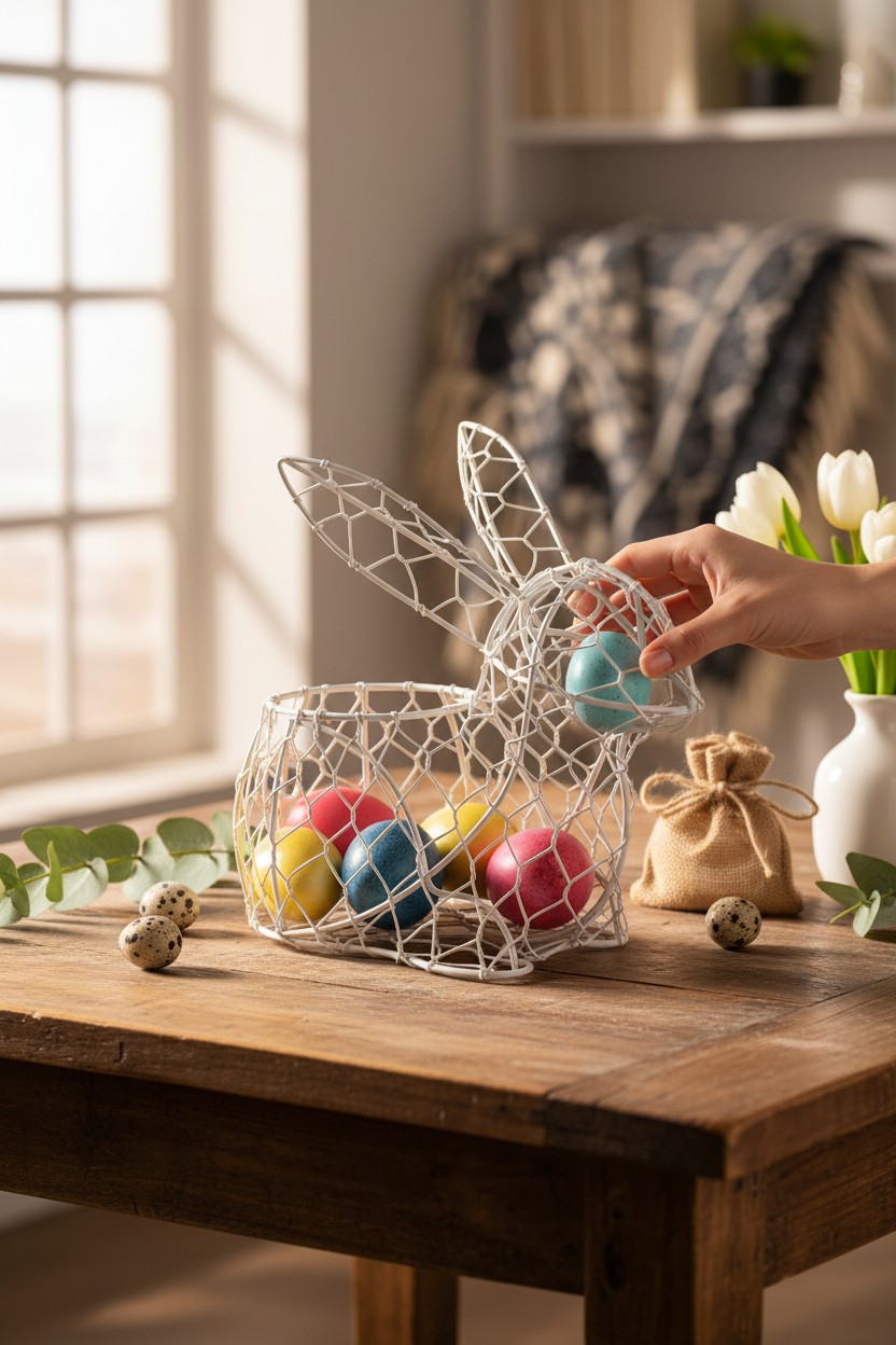 Velikonoční úložné košíky spojují praktické využití s hravou sváteční atmosférou. Drátěné koše ve tvaru zajíčků a slepiček jsou ideální na vajíčka, čokoládové dobroty, pečivo nebo drobné jarní dekorace. Skvěle vypadají uprostřed velikonoční tabule, na kuchyňské lince i v předsíni jako nápaditý doplněk. Díky neutrálním barvám je snadno zkombinujete s dalším velikonočním textilem a dekoracemi a vytvoříte útulný jarní koutek.