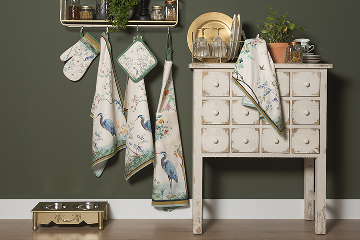 Textilní série Birds in Paradise vás přenese do tropického ráje pokaždé, když prostíráte stůl. Barevní ptáci a exotické rostliny na svěžím podkladu vytvářejí výrazný, ale elegantní letní motiv – ideální pro zahradní party i večeři na terase. Ubrusy, běhouny a prostírání promění každý stůl v letní scénu, dekorační polštáře zútulní jídelní kout i obývák. Stačí přidat pár svíček, sklenice s ledem a ovoce a atmosféra dlouhého letního posezení je zaručena.
