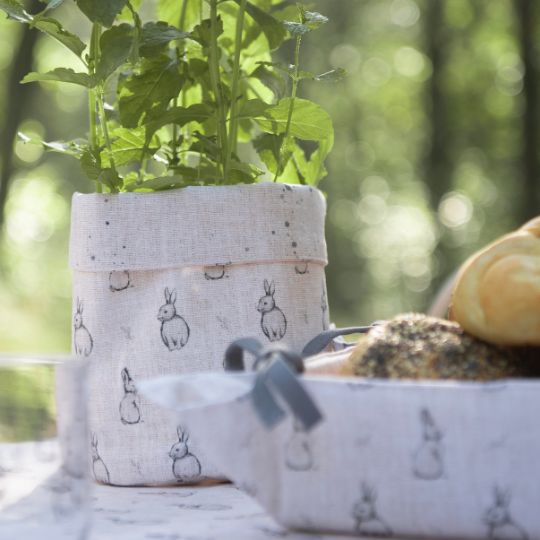 Textilní série Bunny Buddies vnese do interiéru hravou a něžnou atmosféru. Na podkladu v lněném vzhledu se vyjímají roztomilí králíčci doplnění šedými akcenty, díky nimž působí kolekce stylově a přitom mile. Běhouny na stůl, textilní košíky na pečivo a kuchyňské utěrky ozdobí jídelnu i kuchyni a postarají se o radostný detail při každodenním stolování. Ideální volba pro všechny, kdo milují jemný design, zvířecí motivy a útulný, láskyplný domov.