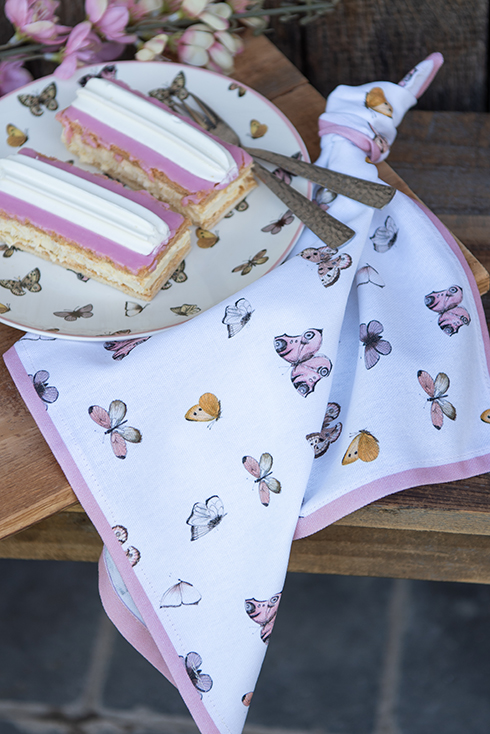 Textilní série Butterfly Paradise vnese do interiéru lehkou letní náladu. Na světlém podkladu poletují barevní motýlci doplnění růžovými akcenty – celek působí jemně, hravě a optimisticky. Ubrusy, běhouny, prostírání, ubrousky a textilní košíky na pečivo promění stůl v místo, kde je radost se sejít. Kuchyňské utěrky, zástěry, chňapky a rukavice jsou k dispozici pro dospělé i děti. V kombinaci s ladícím nádobím vytvoříte útulné prostředí pro rodinné obědy i letní posezení s přáteli.