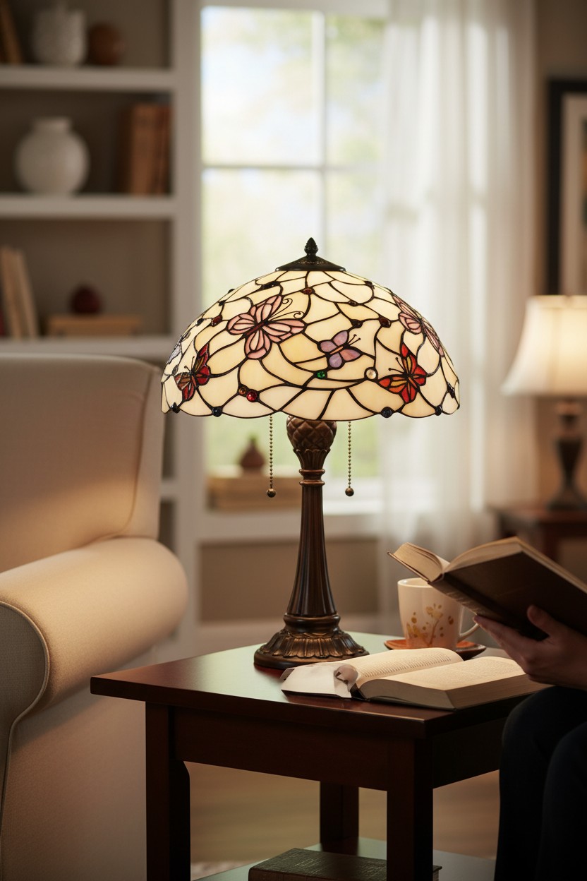 Tiffany lampy z kolekce Butterfly Paradise okouzlí milovníky jemných detailů i přírodních motivů. Vitrážová stínidla zdobí pestrý rej motýlů, který přináší do interiéru klid, harmonii a pocit nadčasového kouzla. Precizní zpracování a bohaté barevné přechody z nich dělají malé umělecké dílo, které vynikne v klasickém i moderním prostředí. Butterfly Paradise je poctou věčné kráse přírody a skvělou volbou všude tam, kde chcete vytvořit elegantní, útulnou a inspirativní atmosféru – ať už v obývacím pokoji, ložnici nebo čtecím koutku.