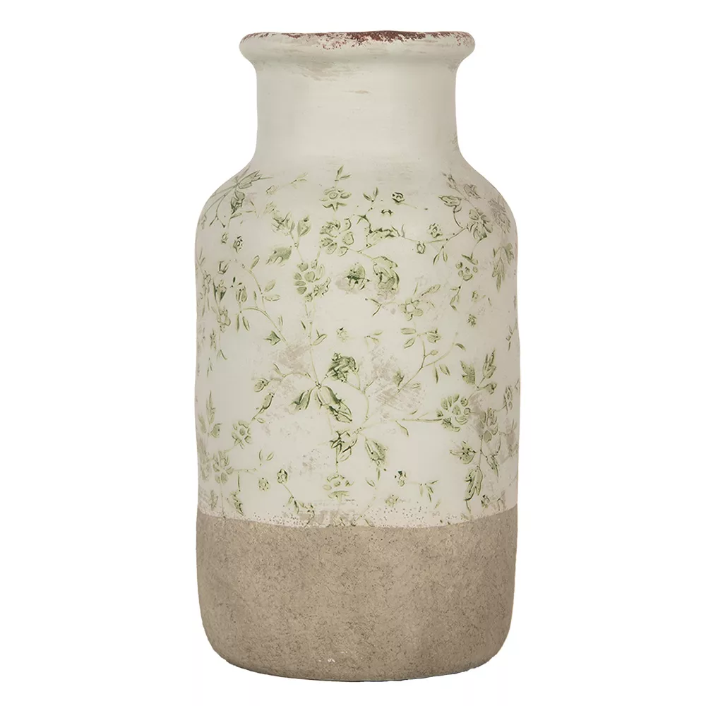Dekorativní béžovo-zelená keramická váza s květinovým motivem ve venkovském stylu. Vázu můžete použít jako dekoraci nebo ji naplnit pěknými sušenými květinami. Váza je součástí série LEAVES OF GRACE.