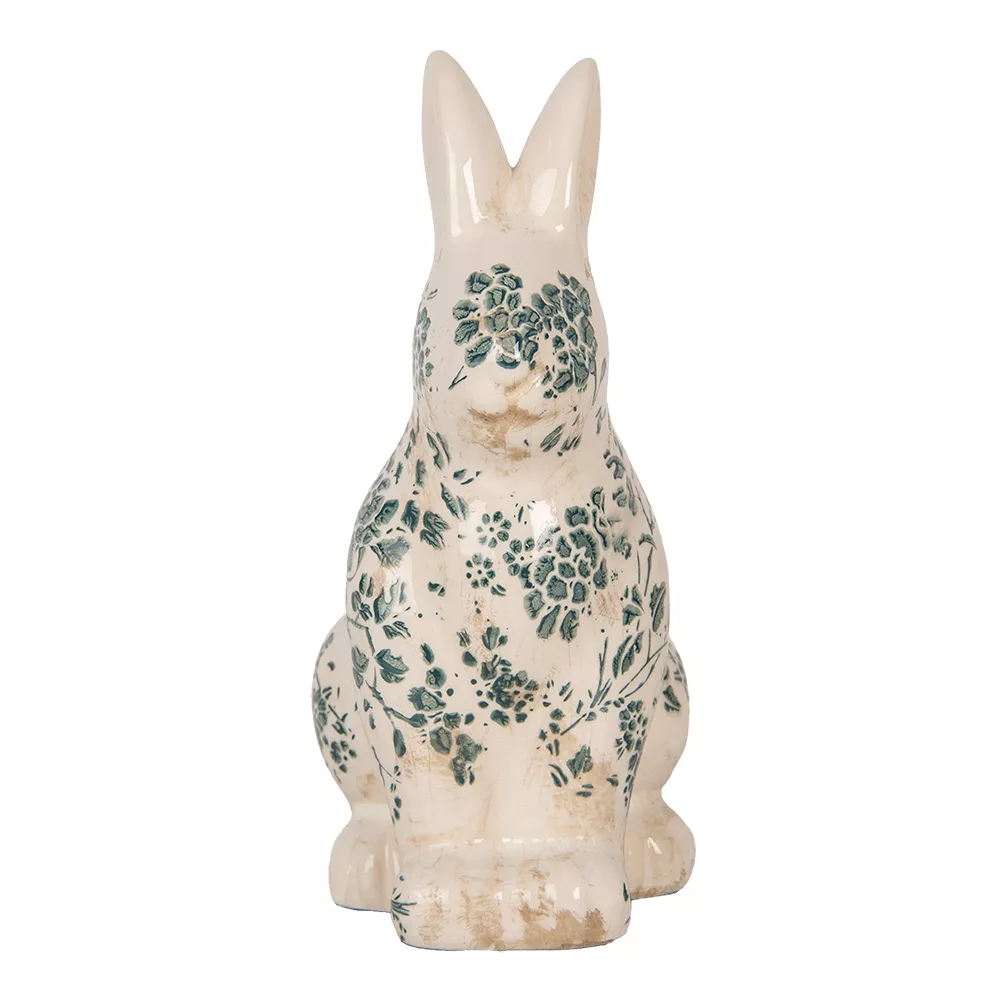 Dekorativní béžový keramický králík s květinovým motivem ve venkovském stylu. Králík je součástí série. Bude pěknou ozdobou zahrady nebo pokoje, vystavíte-li ho vedle květináče se stejným dekorem, ze série OLD-FASHIONED CHIC.