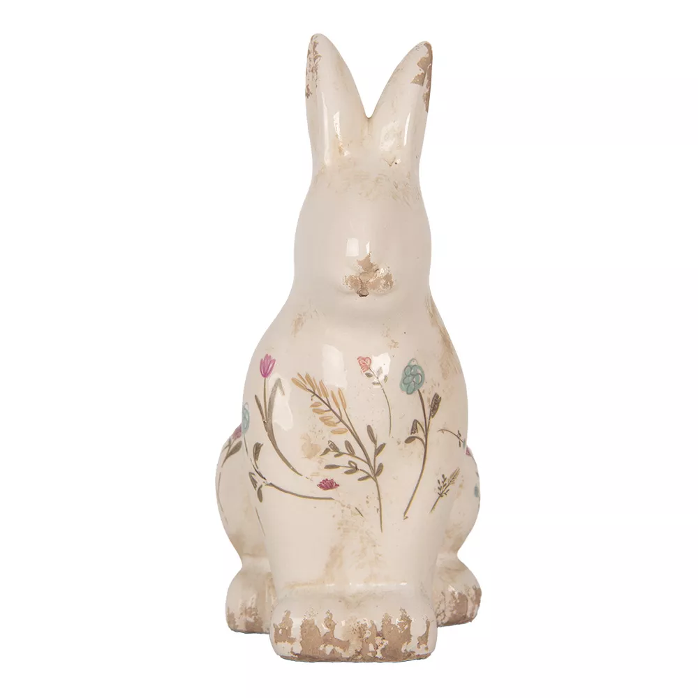 Dekorativní béžový keramický králík s květinovým motivem ve venkovském stylu. Králík je součástí série. Bude pěknou ozdobou zahrady nebo pokoje, vystavíte-li ho vedle květináče se stejným dekorem, ze série CHEERFUL FIELDS.