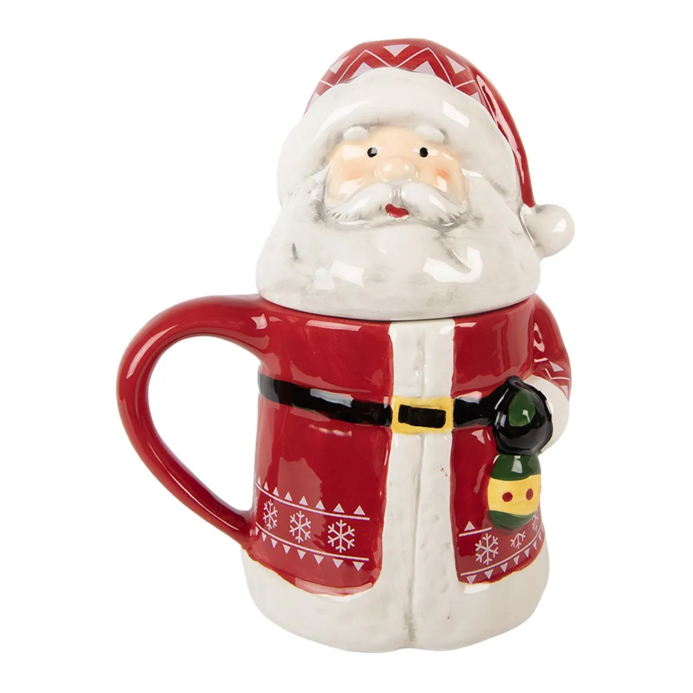 Keramický hrnek s víčkem SANTA CLAUS Clayre & Eef 6CEMU0196