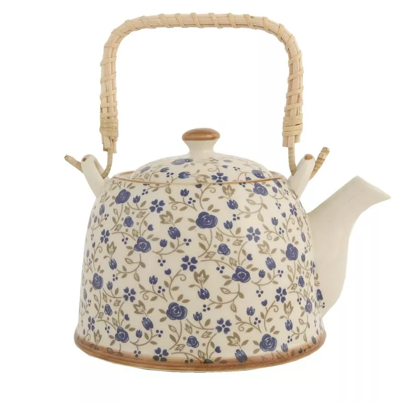 Půvabná keramická konvička na čaj s květinovým vzorem, ucho z drátu a ratanu. Součástí je sítko na čaj, které se vkládá pod víčko. Objem konvičky je 700 ml. Konvičku doplňte kalíšky se stejným motivem a pozvěte přátele na čajový dýchánek.