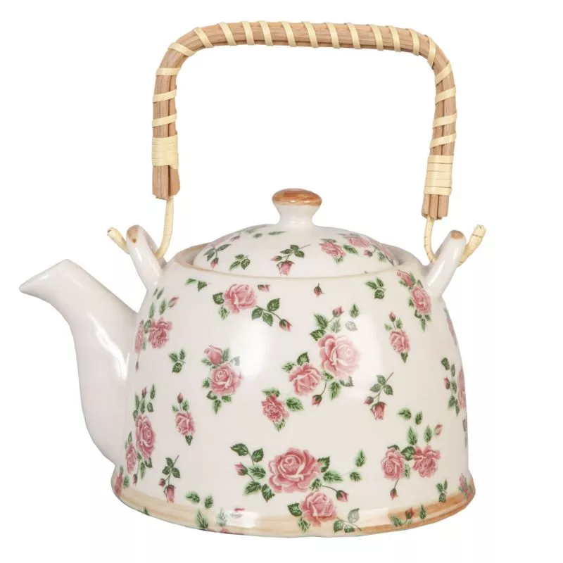 Keramická konvička na čaj s nerezovým sítkem na sypaný čaj. Užijte si čerstvě uvařený čaj z této krásné konvičky plné růžiček. Objem konvičky je 700 ml.