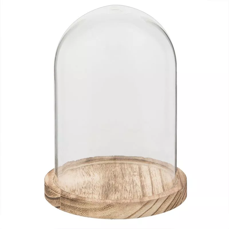 Pěkný skleněný poklop s hnědou dřevěnou podstavou ve venkovském stylu. Ať už je zima, podzim, jaro nebo léto, vždy najdete vhodné a stylové dekorativní prvky pro skleněný poklop. Vystavte pod něj vzácné knihy, šperky, svíčky, sukulenty, 3D figurky... Můžete samozřejmě také skvěle prezentovat pečivo, zákusky, dorty nebo jiné občerstvení.
