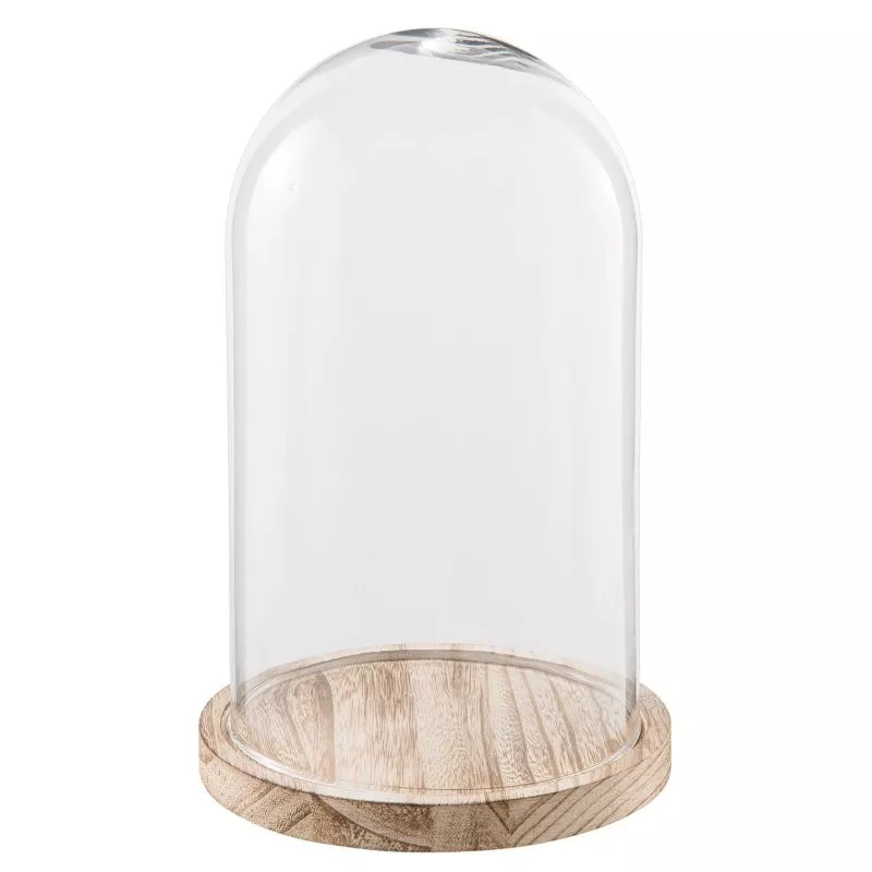 Pěkný skleněný poklop s dřevěnou podstavou ve venkovském stylu. Ať už je zima, podzim, jaro nebo léto, vždy najdete vhodné a stylové dekorativní prvky pro skleněný poklop. Vystavte pod něj vzácné knihy, šperky, svíčky, sukulenty, 3D figurky... Můžete samozřejmě také skvěle prezentovat pečivo, zákusky, dorty nebo jiné občerstvení.