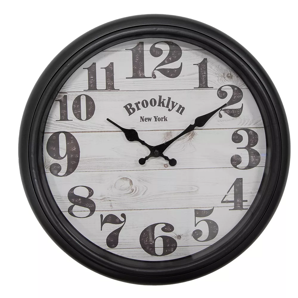 Dekorativní černo-béžové nástěnné hodiny z plastu a skla ve venkovském stylu. Fungují na baterii 1xAA (není součástí dodávky). Snadno se zavěšují pomocí 1 šroubu.