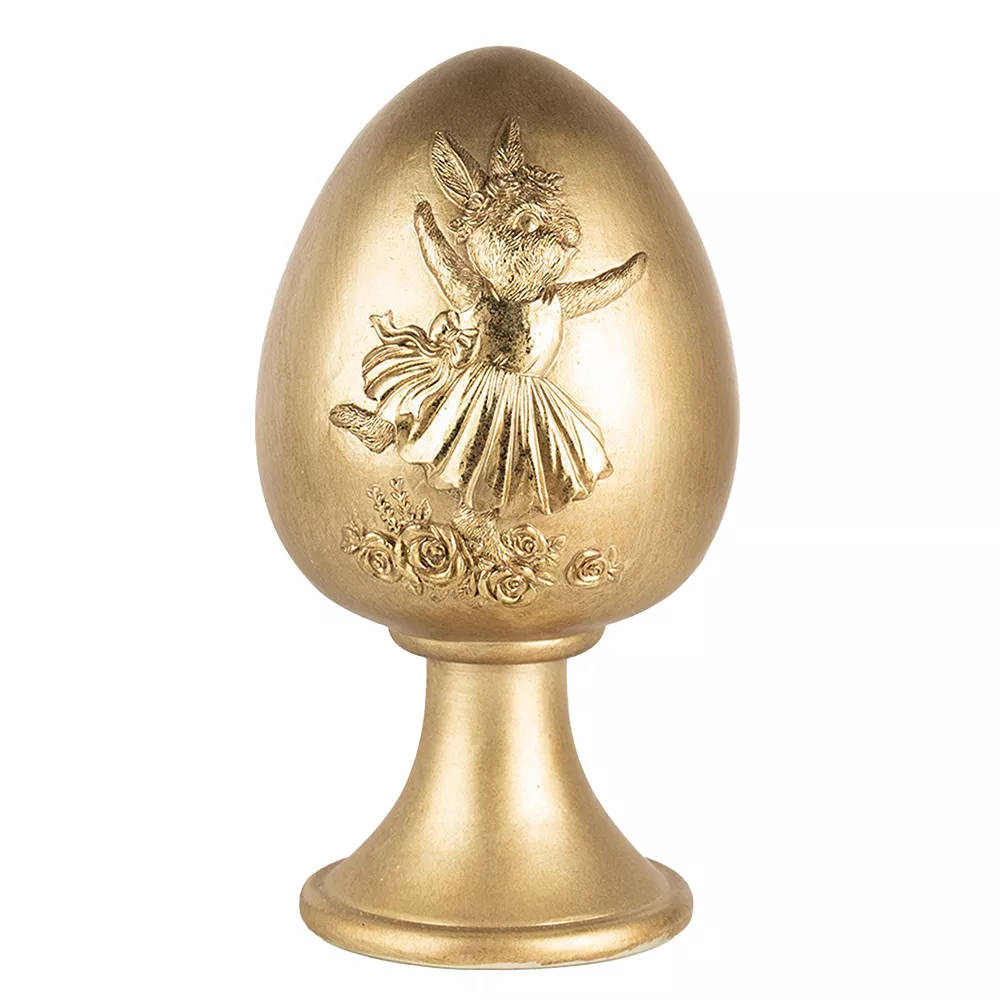 Dekorativní zlaté velikonoční vajíčko s motivem zajíčka je krásným doplňkem velikonoční výzdoby, který vnese do každého prostoru jedinečnou a slavnostní atmosféru.