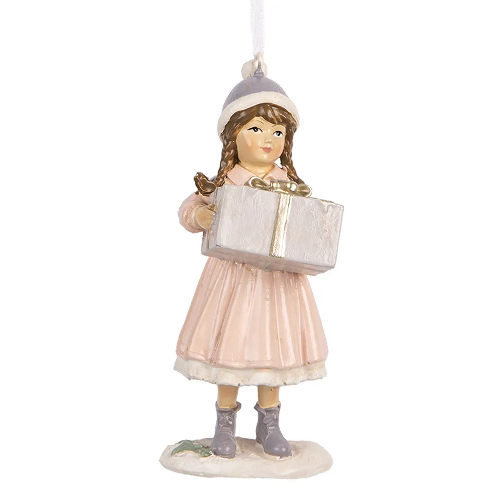 Přidejte kouzlo Vánoc do vašeho domova s touto krásnou závěsnou figurkou děvčátka s dárkem. Tato elegantní závěsná ozdoba v jemném růžovém odstínu dodá vaší vánoční výzdobě nadčasové kouzlo. Ideální jako ozdoba na vánoční stromeček nebo jako součást vánoční výzdoby.