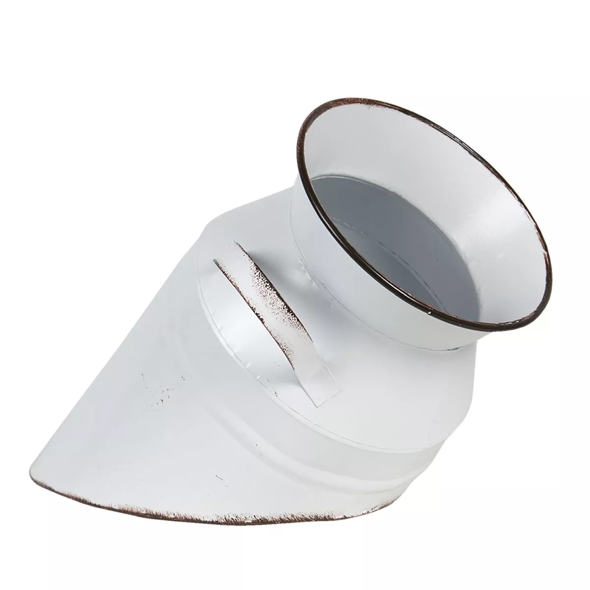 Kovová dekorativní konev na mléko, která připomíná tvarem nádobu zakopanou v zemi. Stane se vynikající dekorací vaší zahrady nebo verandy. Naaranžujte do ní např. převislé rostliny a vystavte na poličku.