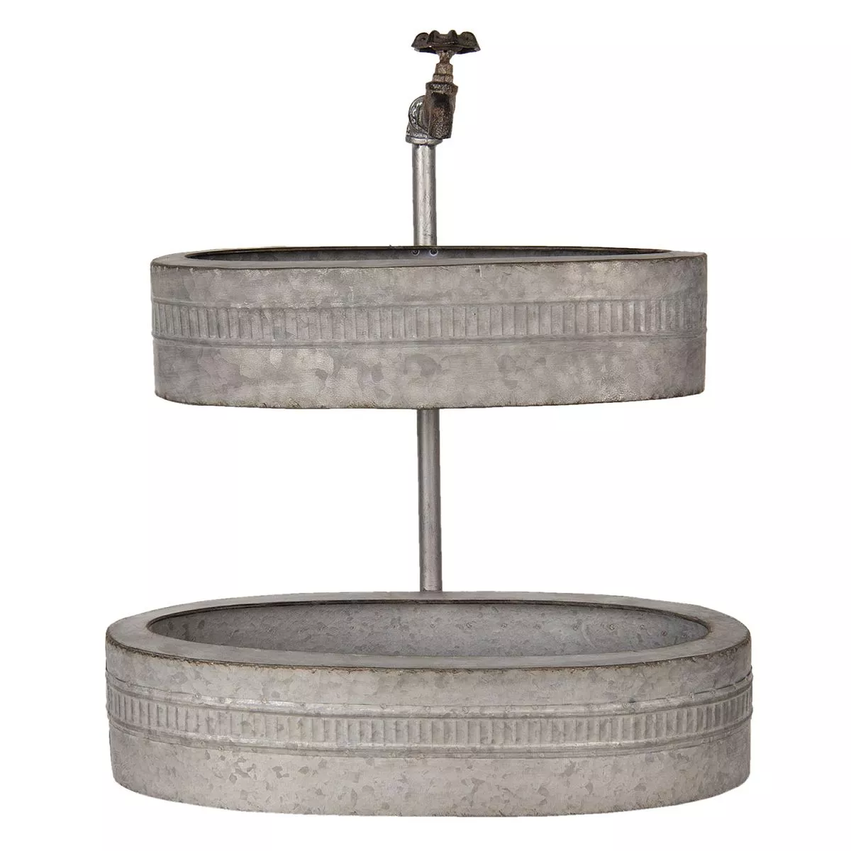 Dvoupatrový stojan na rostliny s oválnými kovovými truhlíky a dekorativním vodovodním kohoutkem v horní části. S vhodnými rostlinami bude nádherně zdobit každou místnost, terasu nebo zahradu.