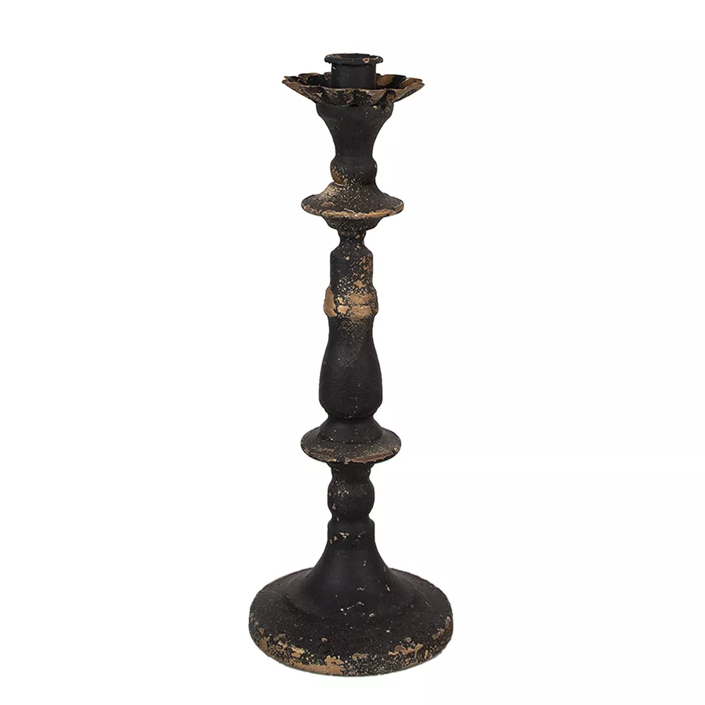 Dekorativní černý svícen z robustního kovu ve vintage stylu. Vhodný pro svíčku o maximálním průměru 2 cm. Krásný prvek, který ozdobí každou místnost.