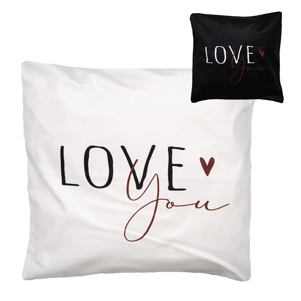 Krásný dekorační polštářek vždy vytvoří doma útulnou a hřejivou atmosféru. Tento povlak na polštář je vyroben z polyesteru a má stylový černobílý design s nápisem LOVE YOU. Je vybaven praktickým zapínáním na zip.