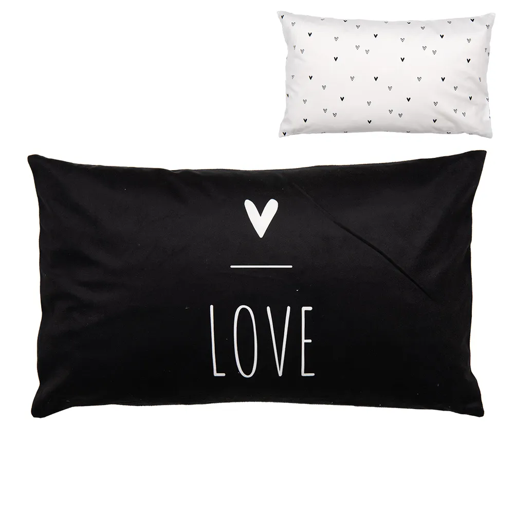 Krásný dekorační polštářek vždy vytvoří doma útulnou a hřejivou atmosféru. Tento povlak na polštář je vyroben z polyesteru a má stylový černobílý design s nápisem LOVE na jedné a srdíčky na druhé straně. Je vybaven praktickým zapínáním na zip.