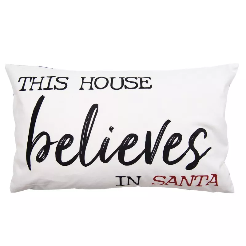 Polyesterový povlak na polštář v bílo-šedém kostkovaném vzoru na jedné a textem This house believe in Santa na druhé straně. Pěkný dekorativní polštář může dodat místnosti jiný styl, zvláště když jej zkombinujete s polštáři ze stejné série BLACK & WHITE X-MAS. Tato malá série obsahuje černobílý vzor s vánočními stromky na černém nebo bílém pozadí. S předměty, jako jsou běhouny na stůl, kuchyňské zástěry, kuchyňské utěrky, chňapky a kuchyňské rukavice, můžete rychle vytvořit klidnou vánoční atmosféru na stole i v kuchyni.