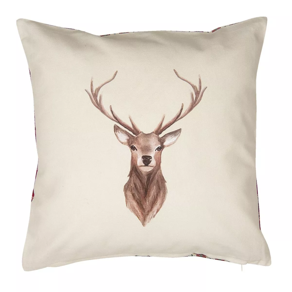 Pěkný bavlněný povlak na polštář z textilní kolekce COSY LODGE. Tuto kolekci ve vánoční atmosféře si zamilují opravdoví milovníci Vánoc. Hlavním prvkem této série je krásně ilustrovaný sob. Shodný kostkovaný vzor a smetanově bílé pozadí dokonale doplňují atmosféru.
